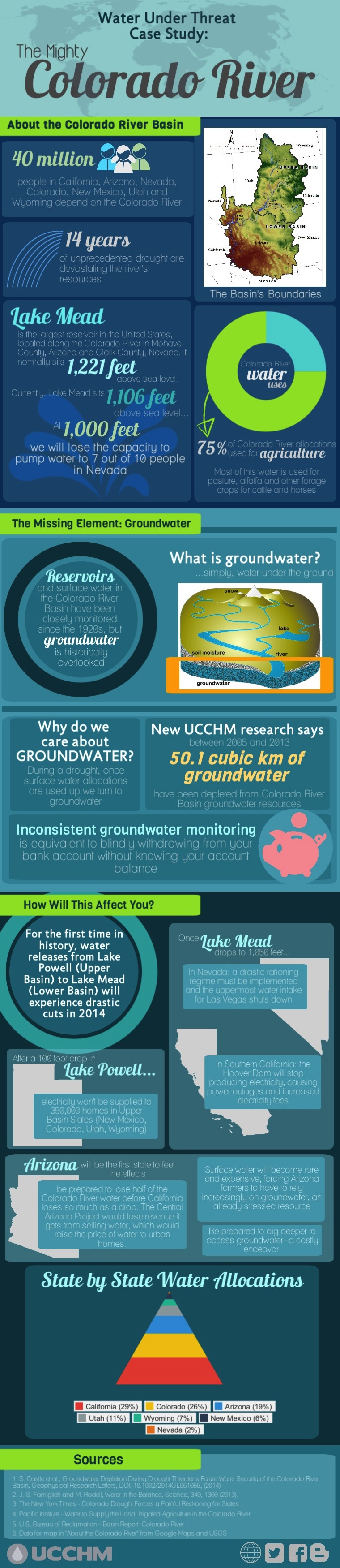 Colorado River Basin Groundwater Depletion infographic to support our paper by Castle et al. (2014) in Geophysical Research Letters. Graphic by Callie Brazil, UC Irvine, Earth System Science.